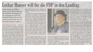Ja, diese Frage kann man sich schon stellen. Als alle Umfragen für die letzte Bundestagswahl die FDP unter 5 % sahen, hat sich fünf Tage vor der Wahl der Regionalverband FDP-Breisgau gegründet.